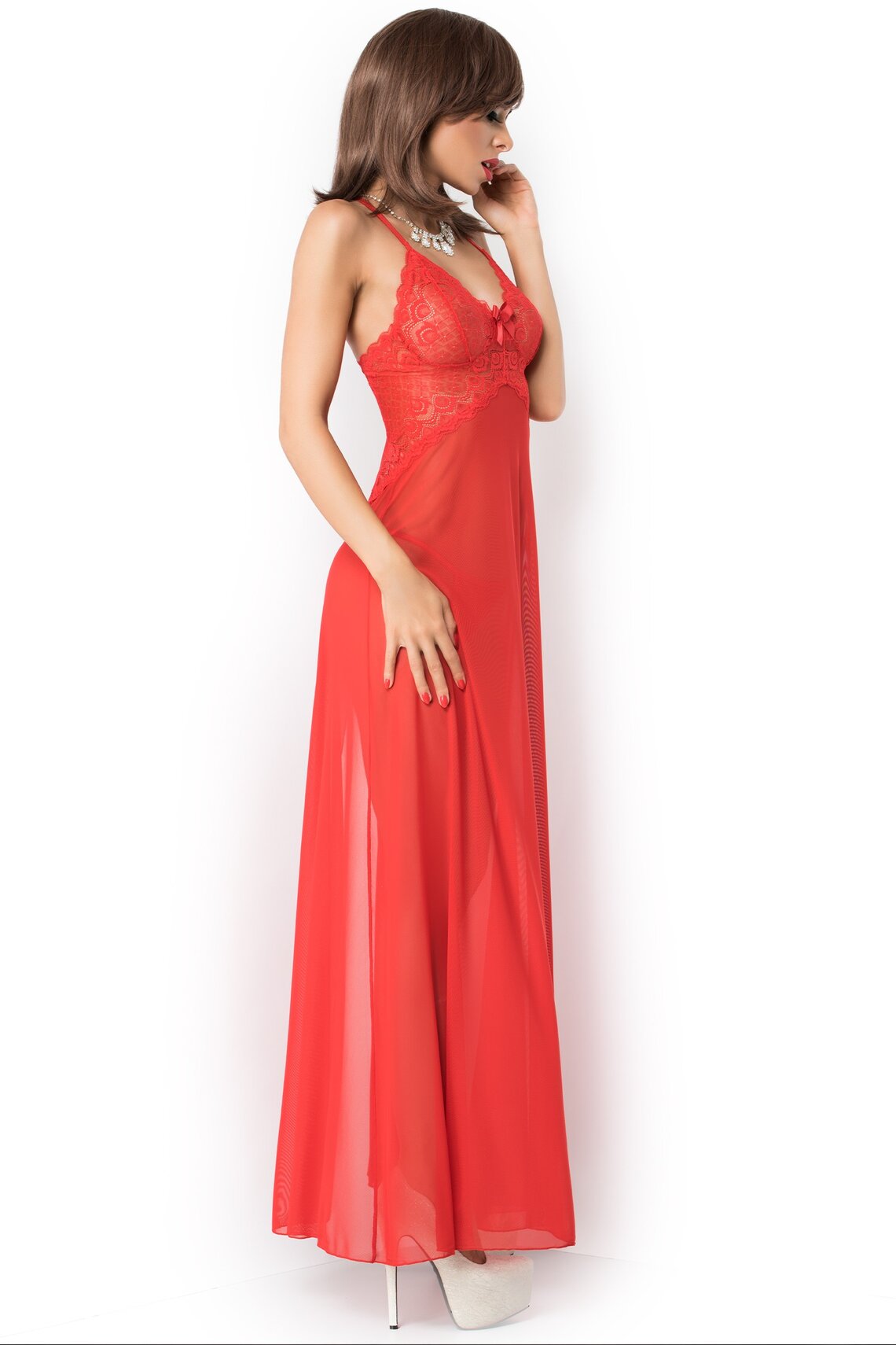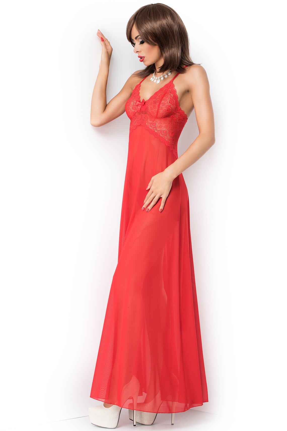 Camisón largo de noche con apertura en la espalda. Disponible en rojo y negro.