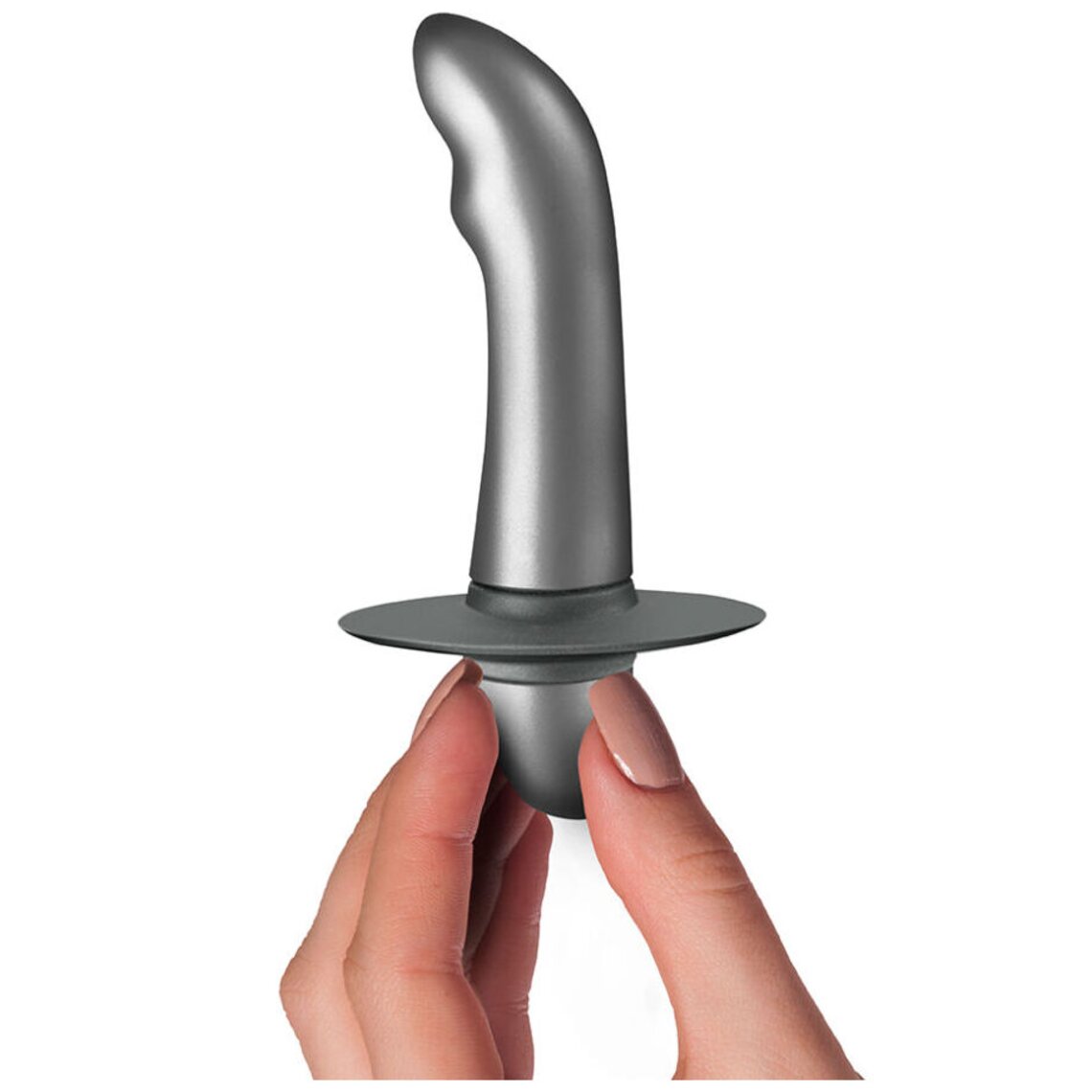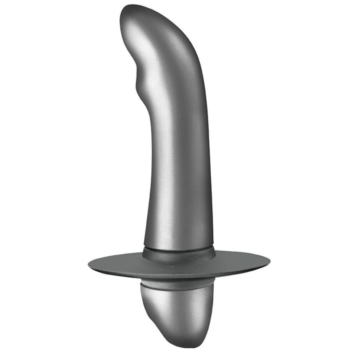 Masajeador próstatico para principiantes. Pequeño, de color plateado y resistente al agua (IPX7).