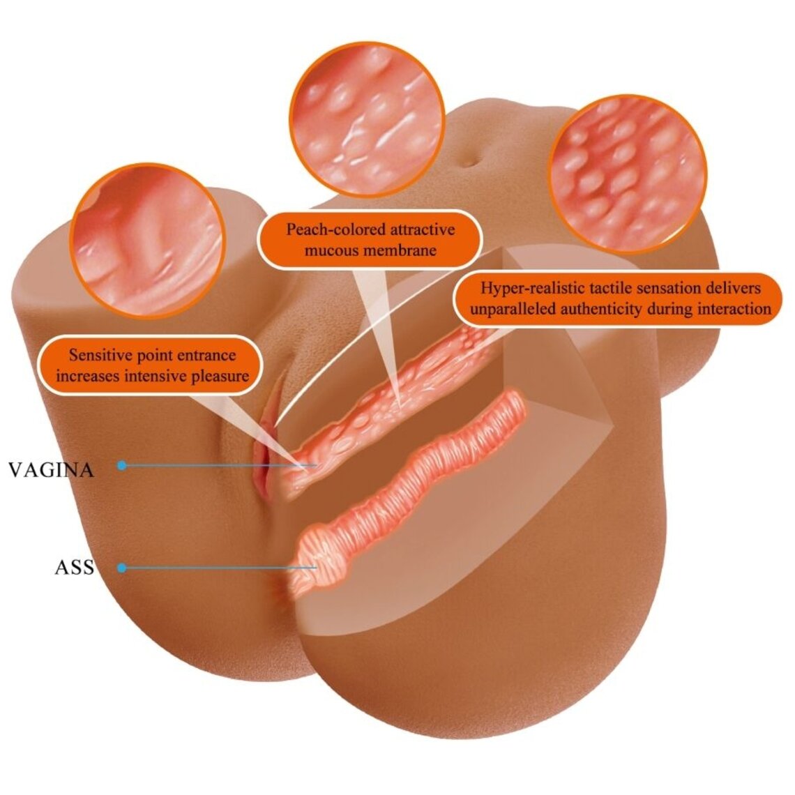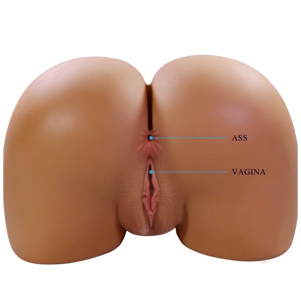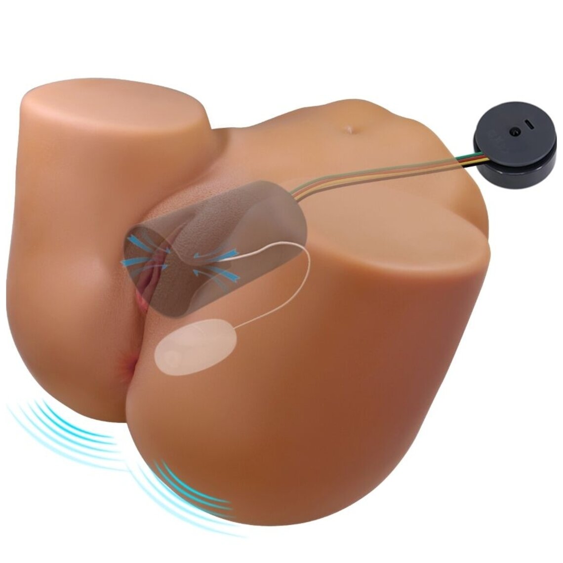 Trasero femenino para masturbación masculina. Su vagina tiene efecto succión. Pesa 11 Kg y reproduce sonidos de gemidos sexuales.