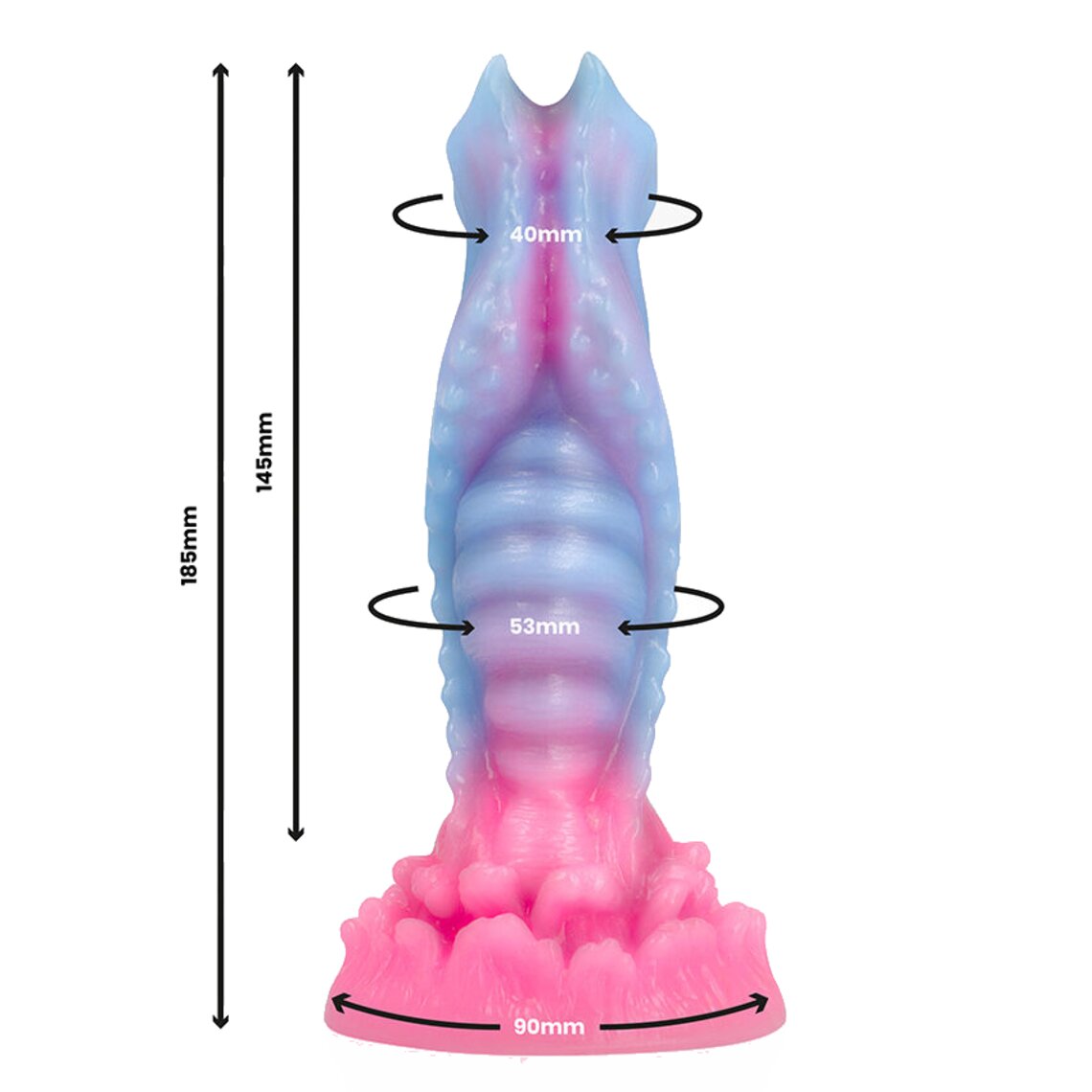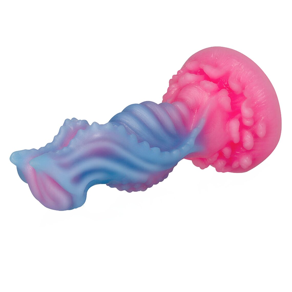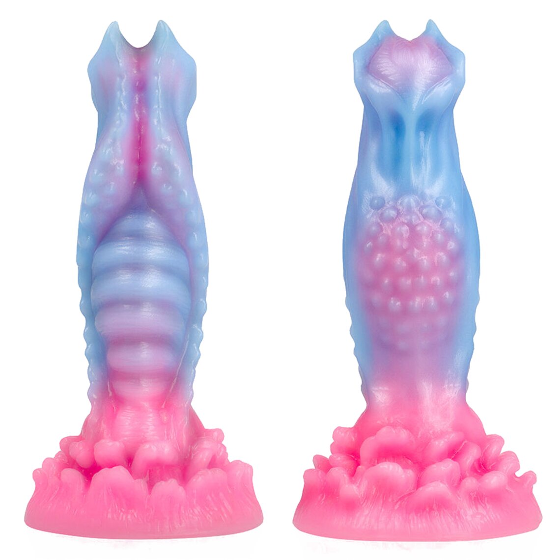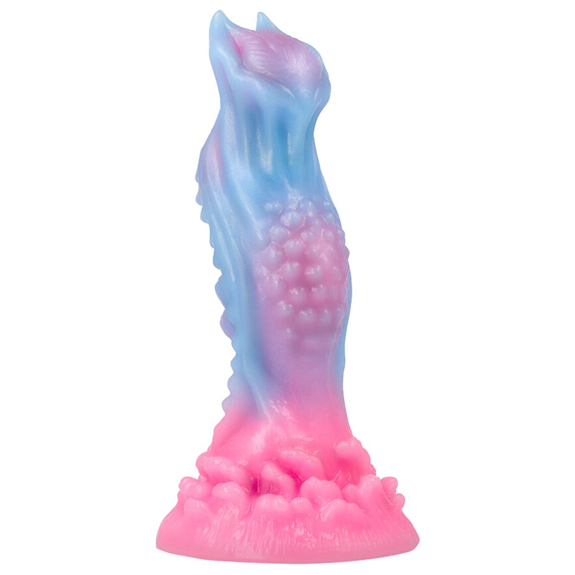 Dildo de fantasía inspirado en el amanecer. 18,5 cm de alto. Color azul claro y rosa.