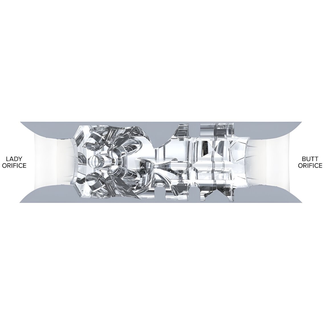 Su formato abierto en ambos extremos, junto con su textura interior detallada, permite un control total del ritmo y la presión, creando una sensación envolvente y dinámica en cada uso.