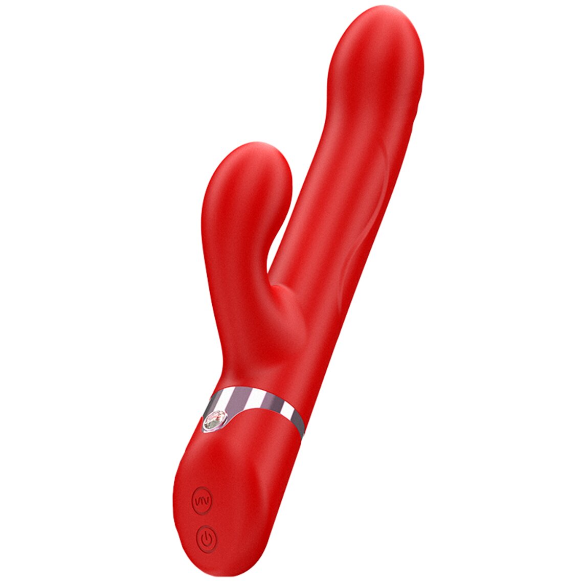 Vibrador sexual multifuncional para mujer. Combina rotación, oscilación y estimulación simultánea.
