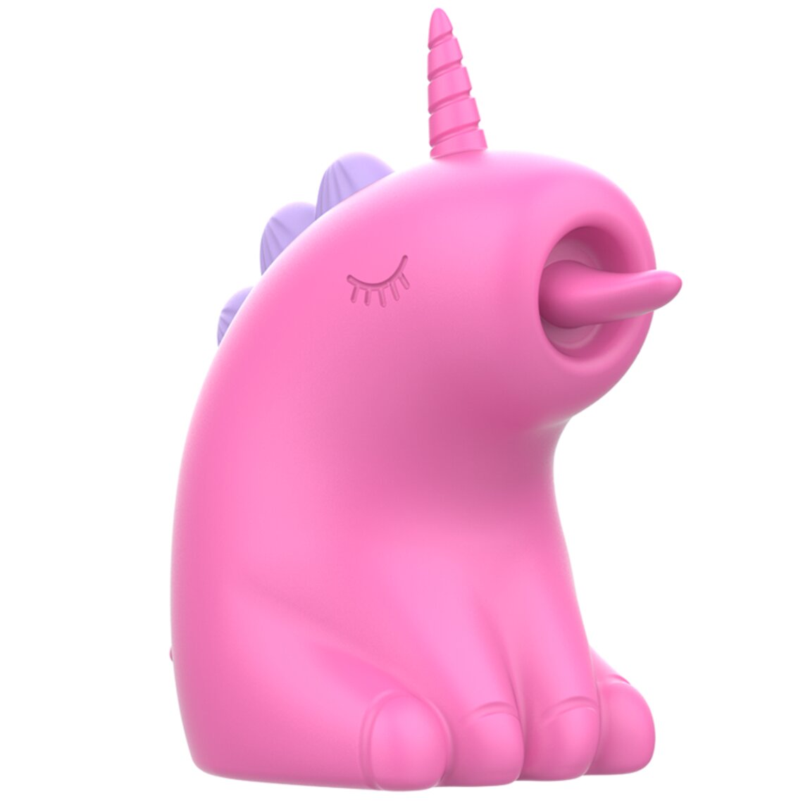Divertido vibrador sexual con forma de unicornio rosa. Su lengua vibratoria estimula el clítoris.