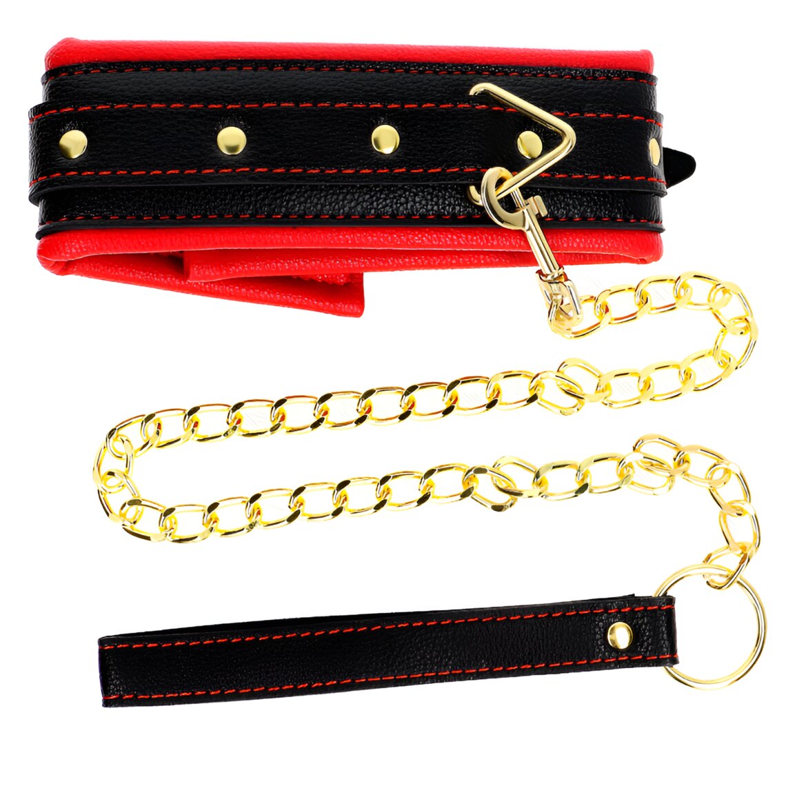 Collar acolchado de imitación cuero con correa, cadena dorada y cierre ajustable