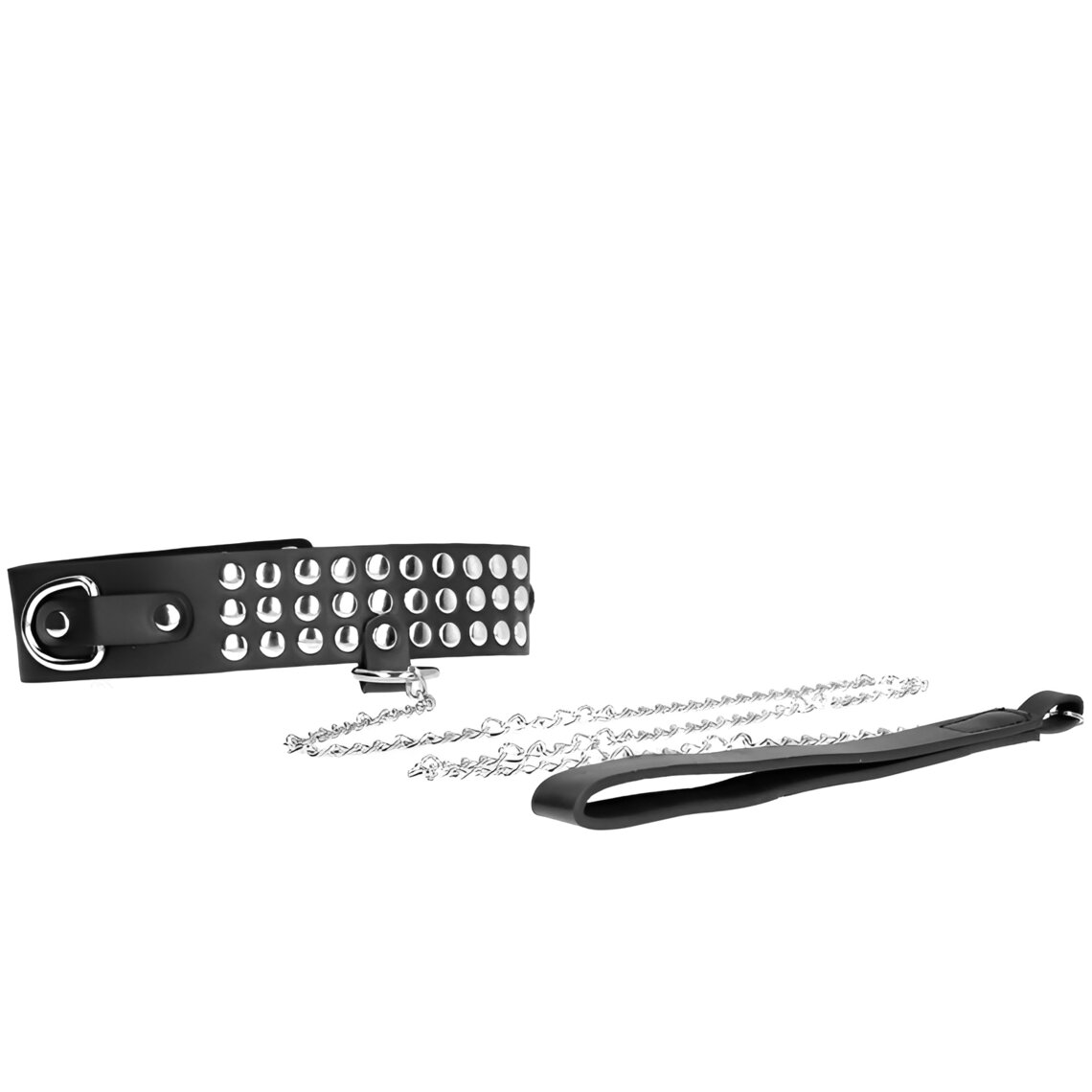 Collar negro con tachuelas brillantes y correa con cadena de 65 cm