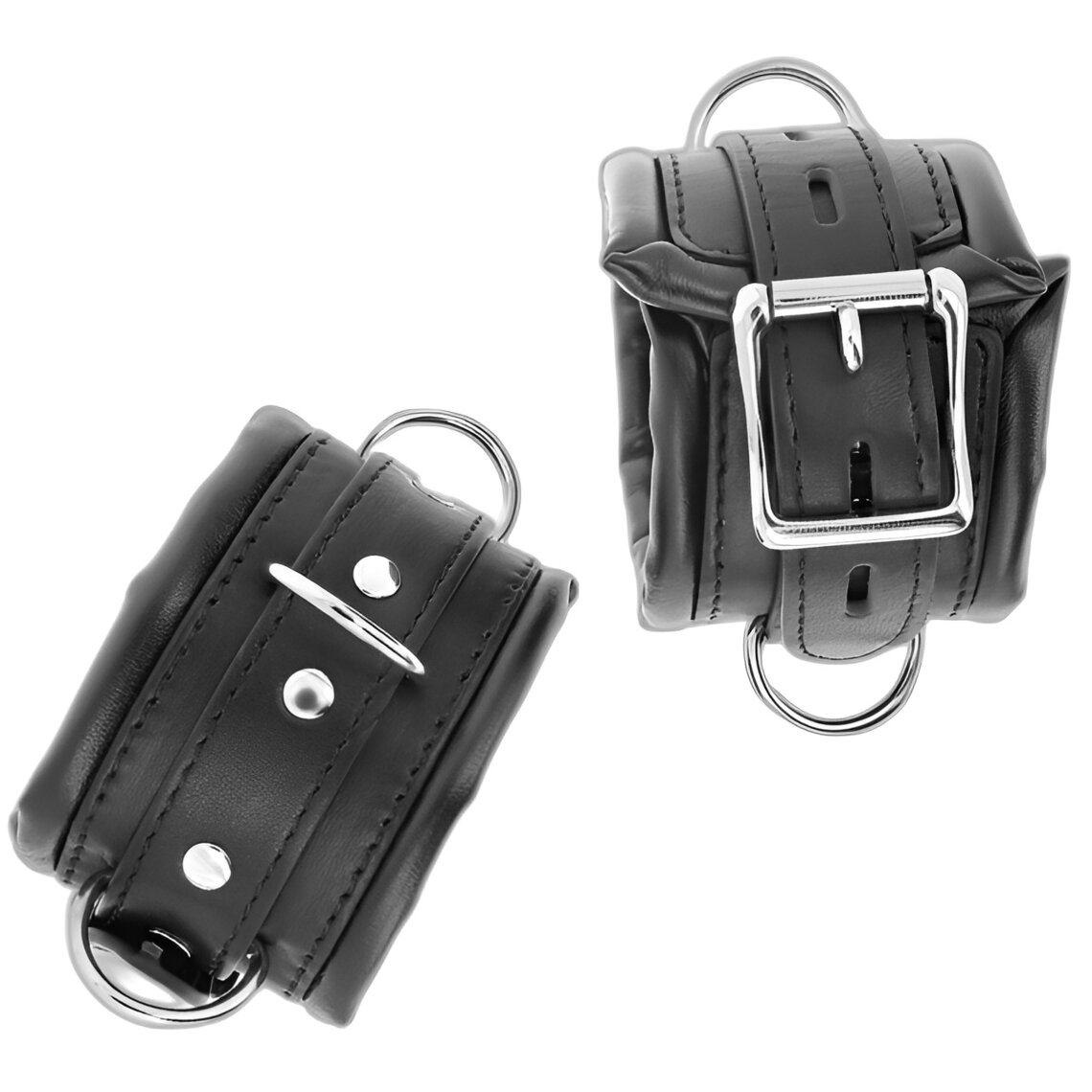 Muñequeras acolchadas ajustables con anillas metálicas y hebillas