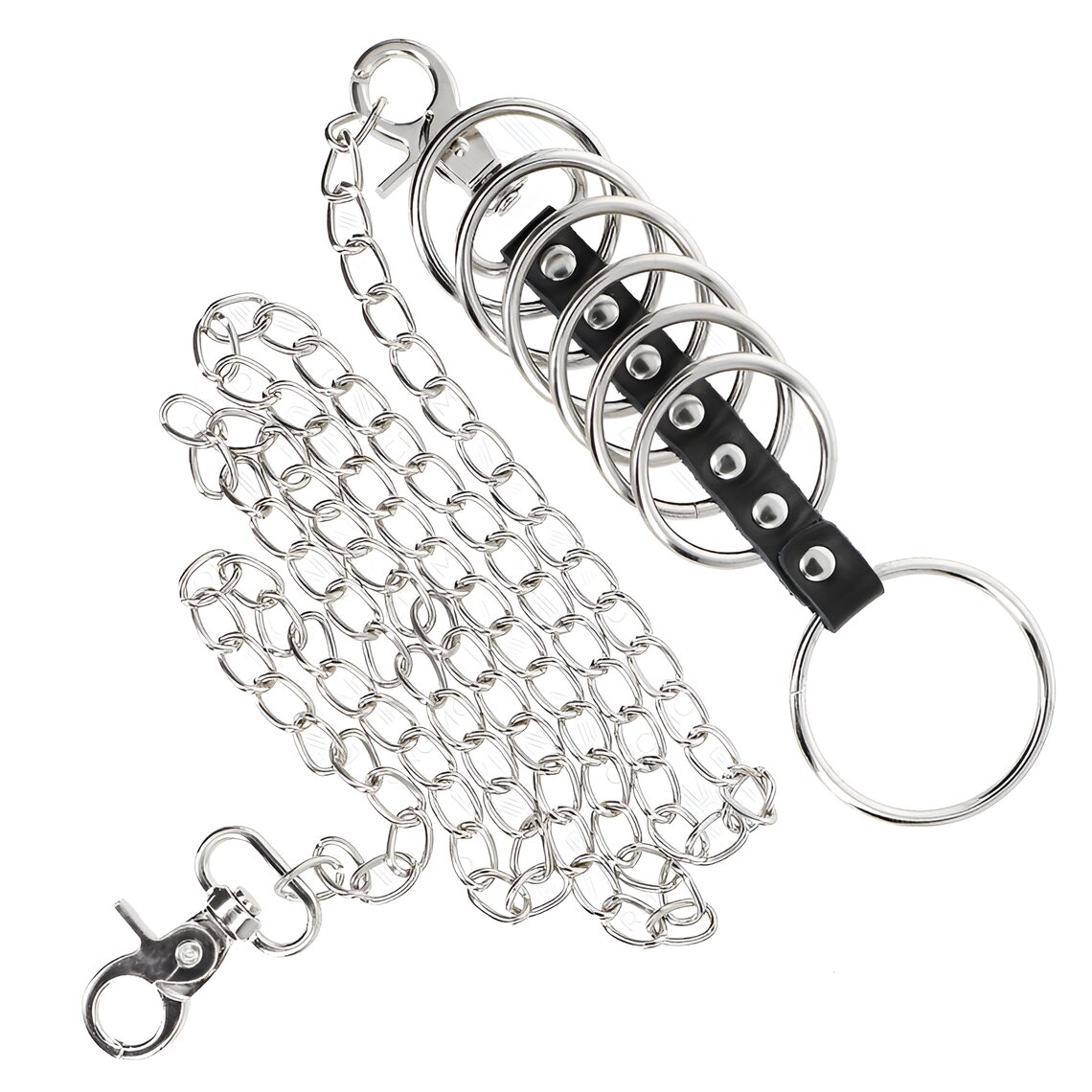 Código SkuKINK-7-METAL-PENIS-RINGS-38-CM-TO-5-CM-CONNECTED-WITH-LEATHER-AND-METAL-CHAIN-100-CM