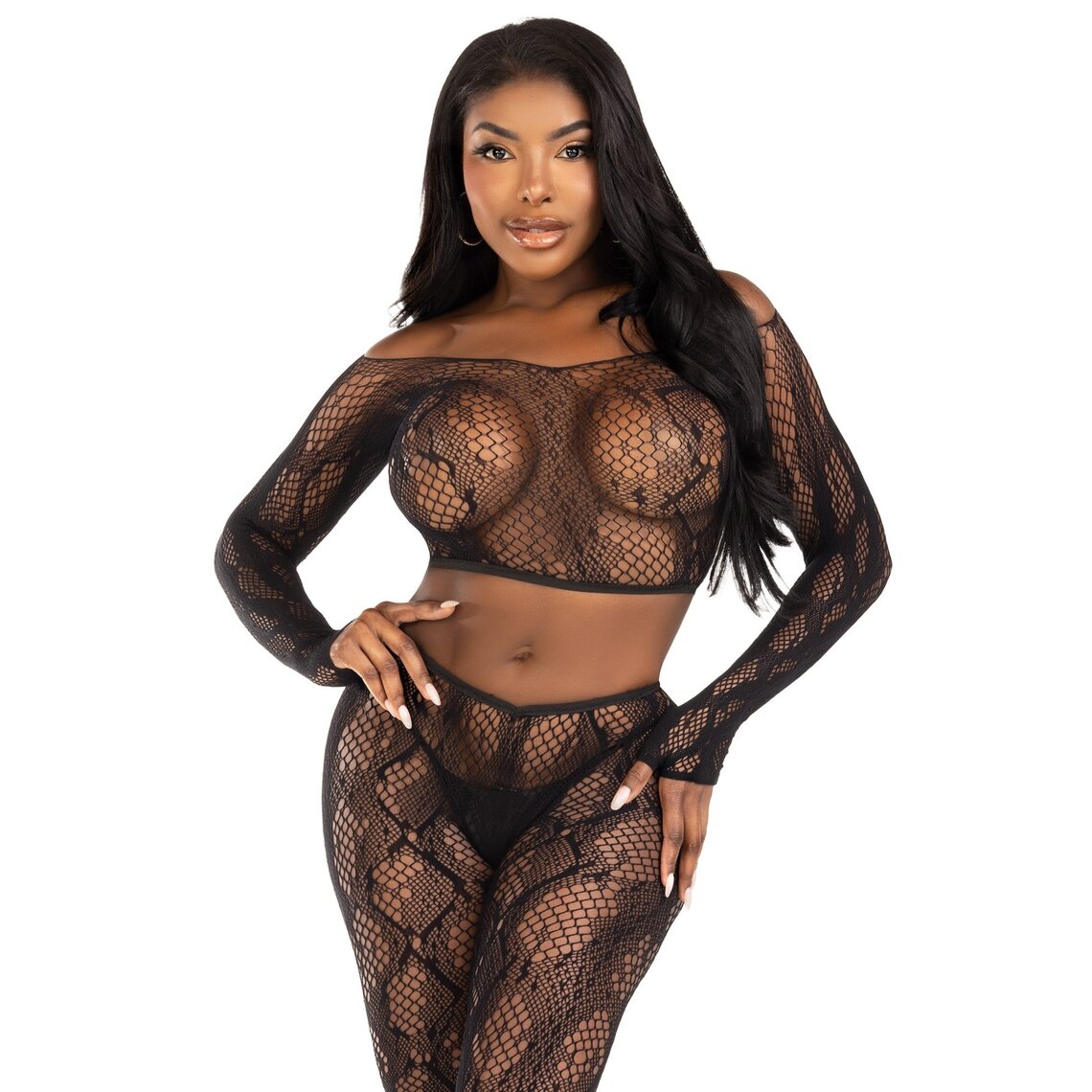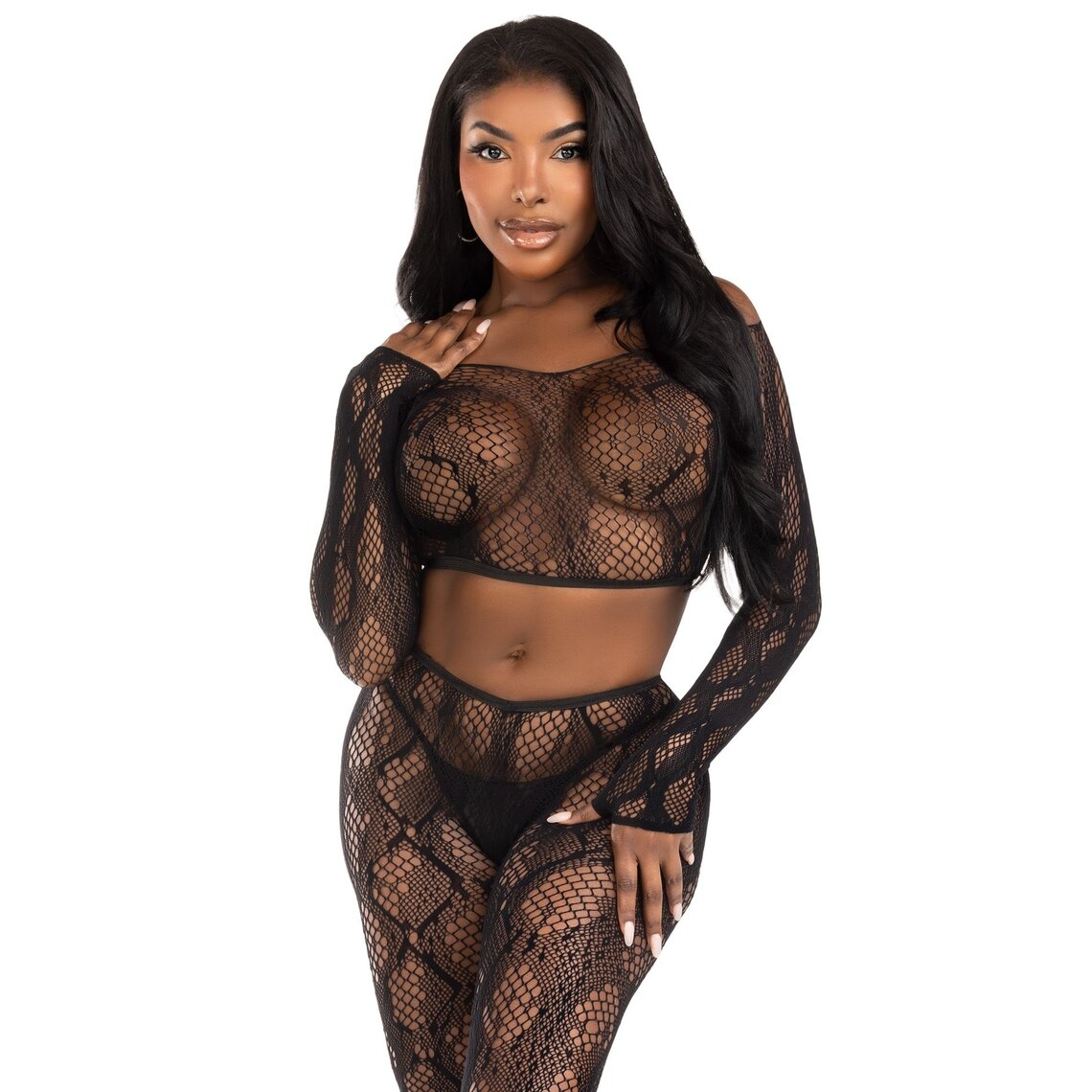 Leg Avenue - Conjunto de Encaje y Red con Diseño de Serpiente