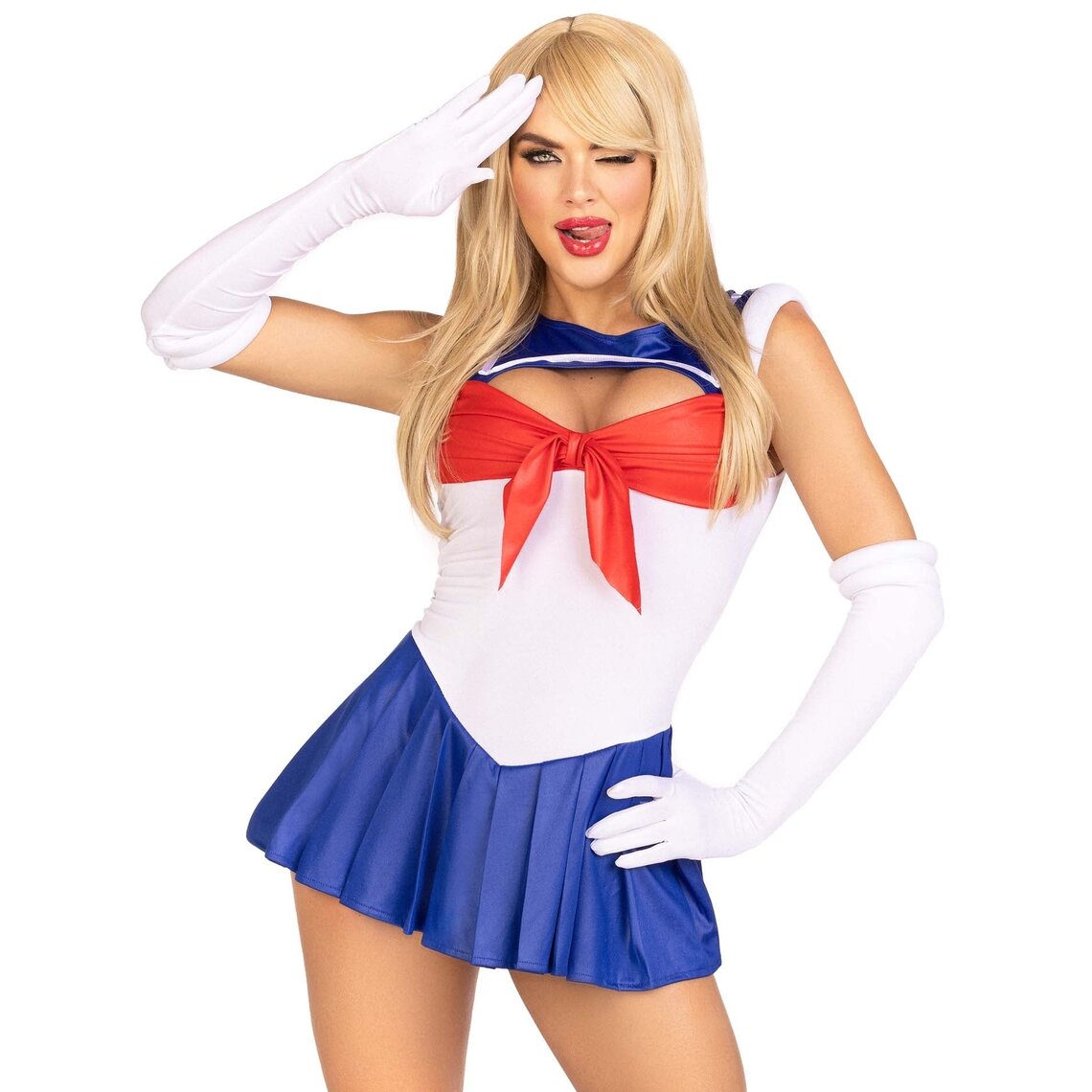 ¡Desata a la diva de dibujos animados que llevas dentro con este conjunto de 3 piezas de Marinera Sexy inspirado en la cultura pop! Ideal para Halloween o carnaval, este atrevido body con cierre a presión se destaca por un coqueto cuerpo recortado y una falda plisada juguetona.