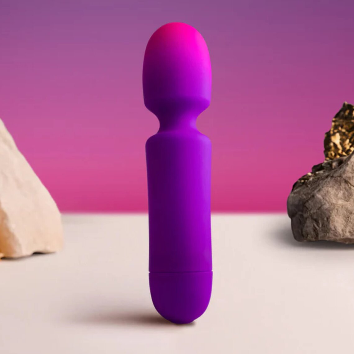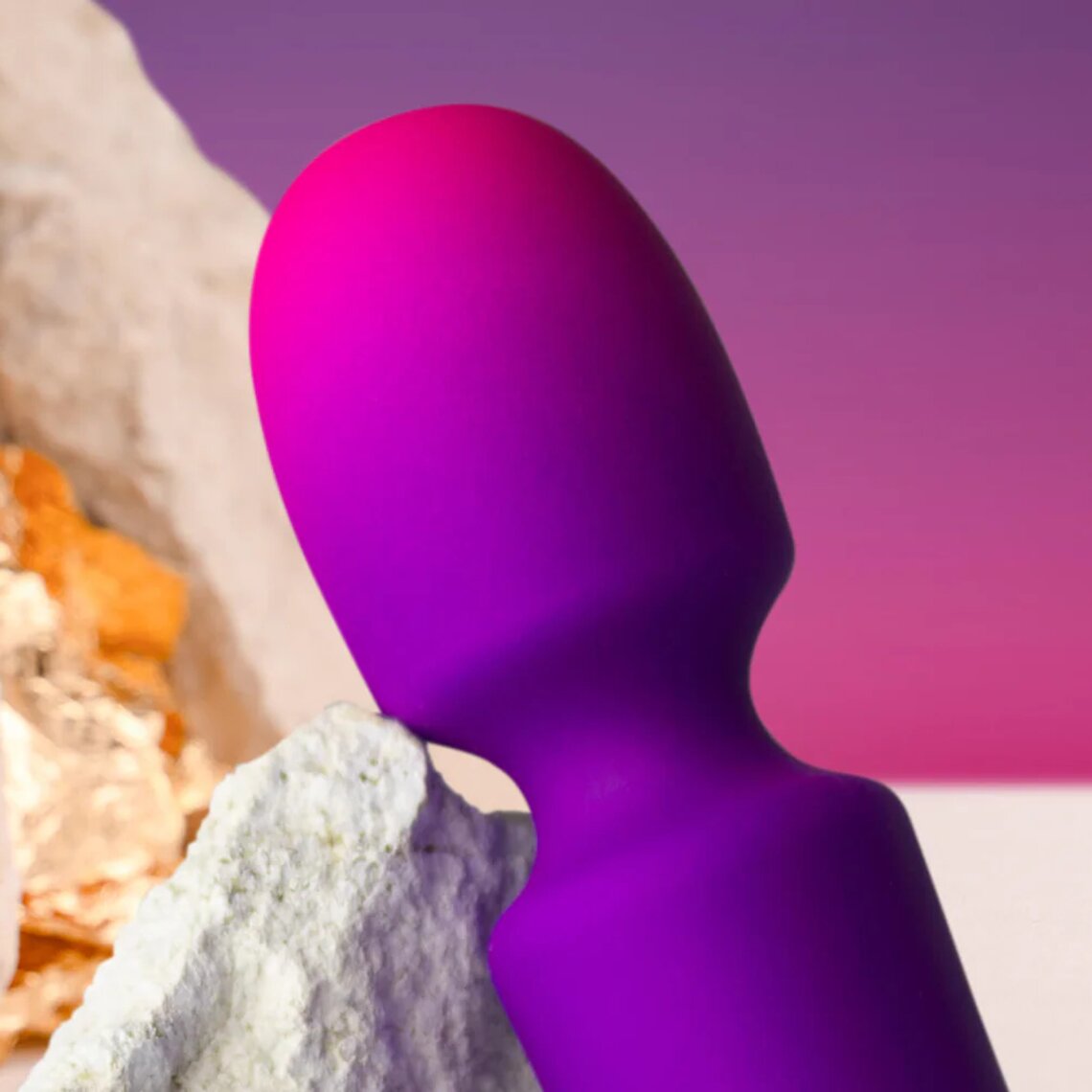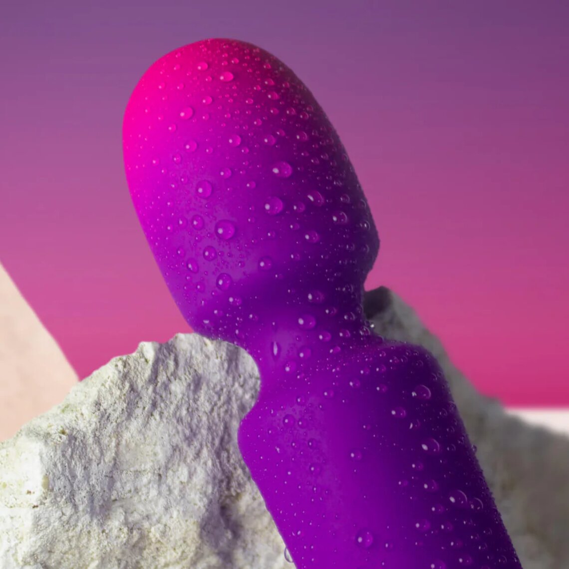 Vibrador varita pequeño en color morado. Diseño ergonómico, ligero (179 gramos) y discreto.