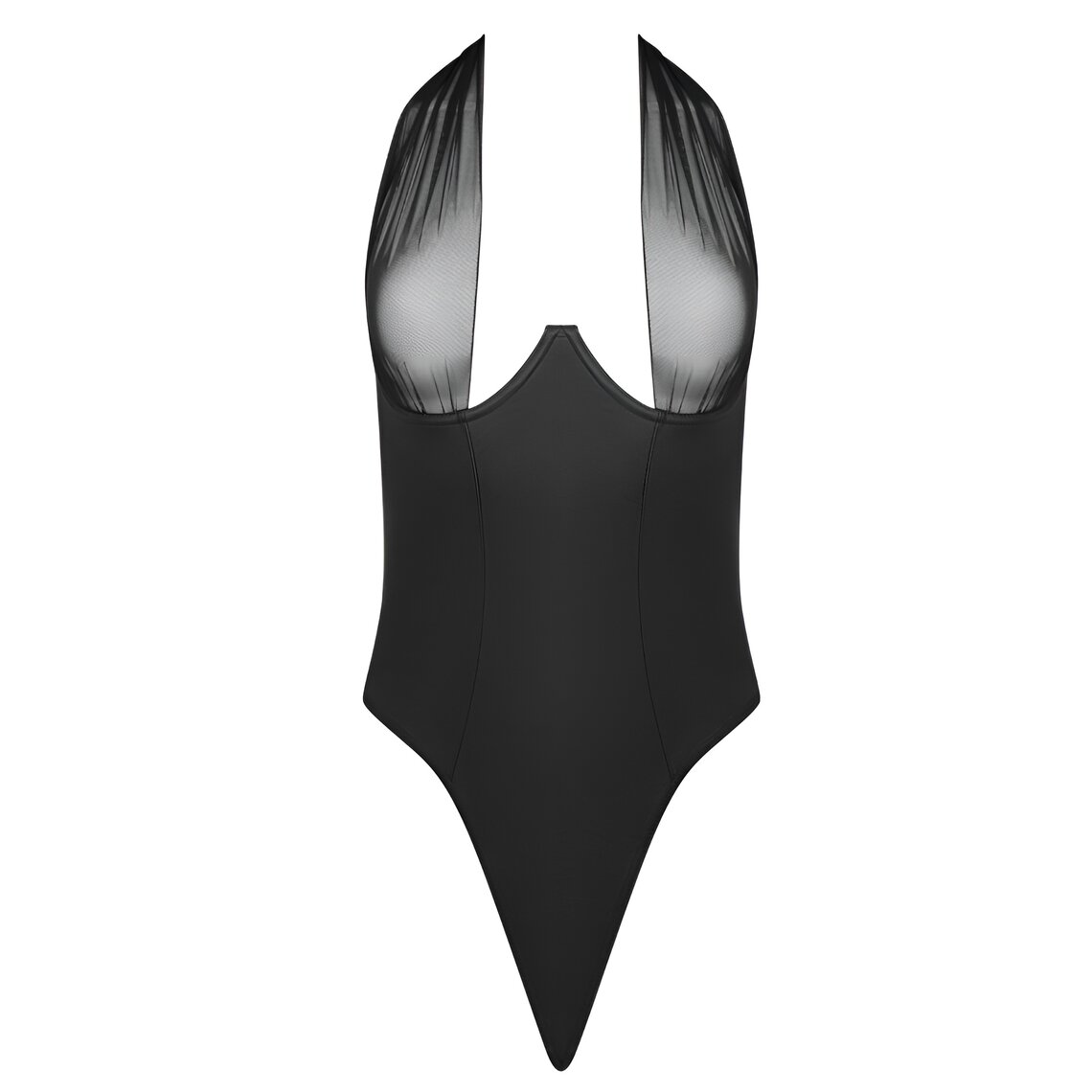 Déjate envolver por la sofisticación del body Kesmina, una prenda diseñada para realzar tu figura con un equilibrio perfecto entre sensualidad y elegancia. Su combinación de transparencias delicadas y acabado efecto cuero crea un look moderno, sugerente y absolutamente irresistible.