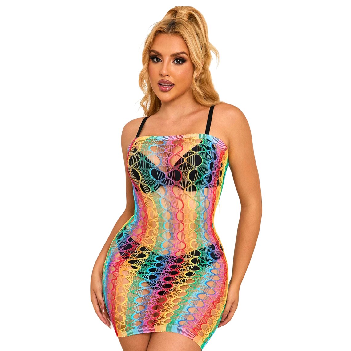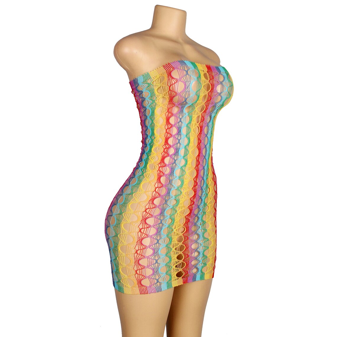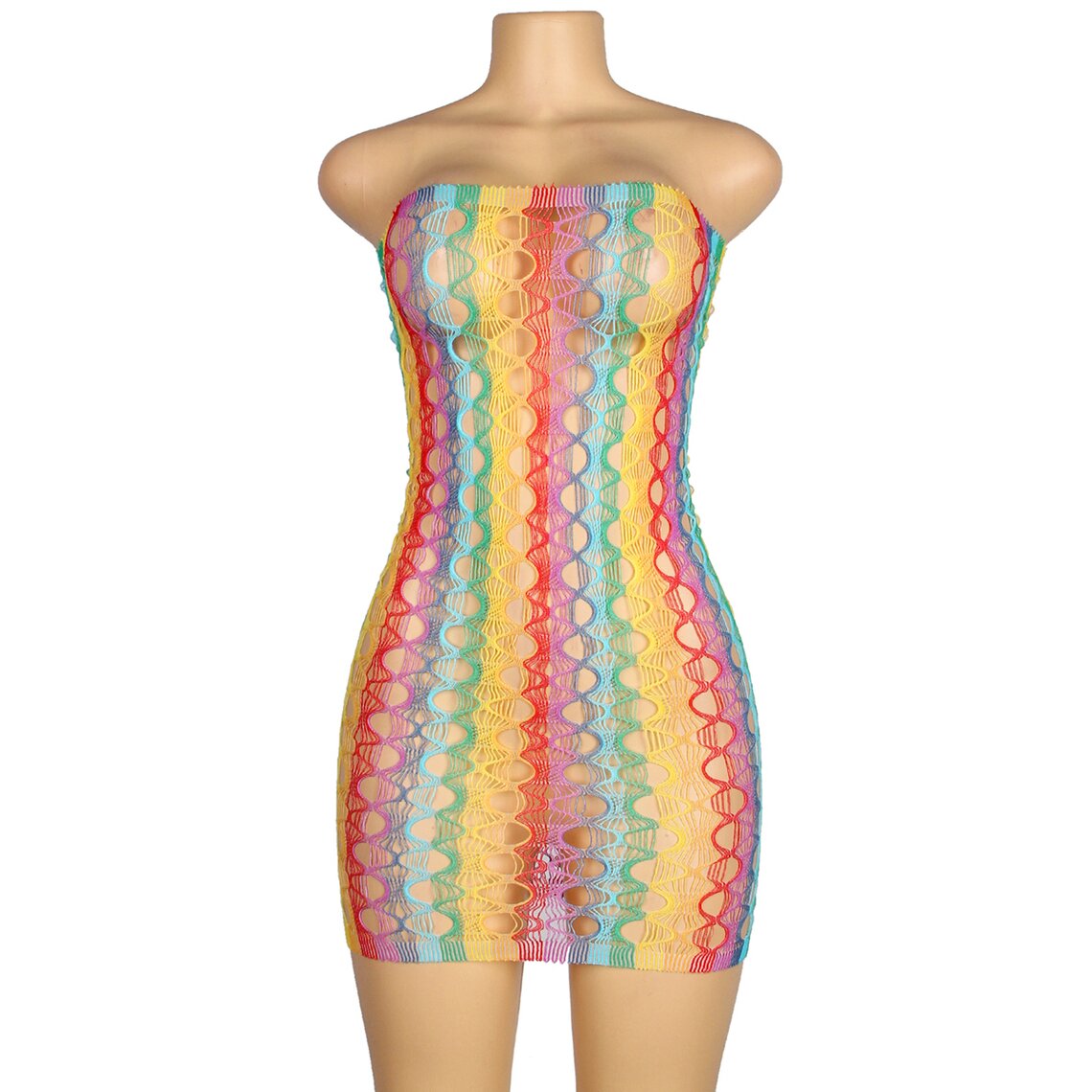 Código SkuSUBBLIME-952365-RAINBOW-BARE-SHOULDER-FISHNET-DRESS-ONE-SIZE
