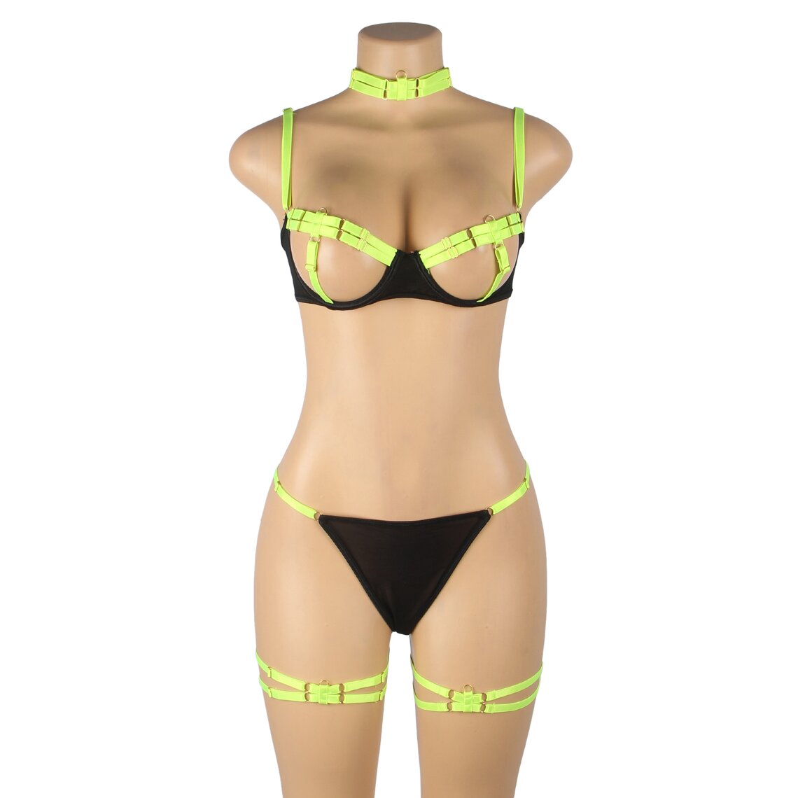 • Subblime - Sujetador de tiras, collar y ligas (Verde neon)