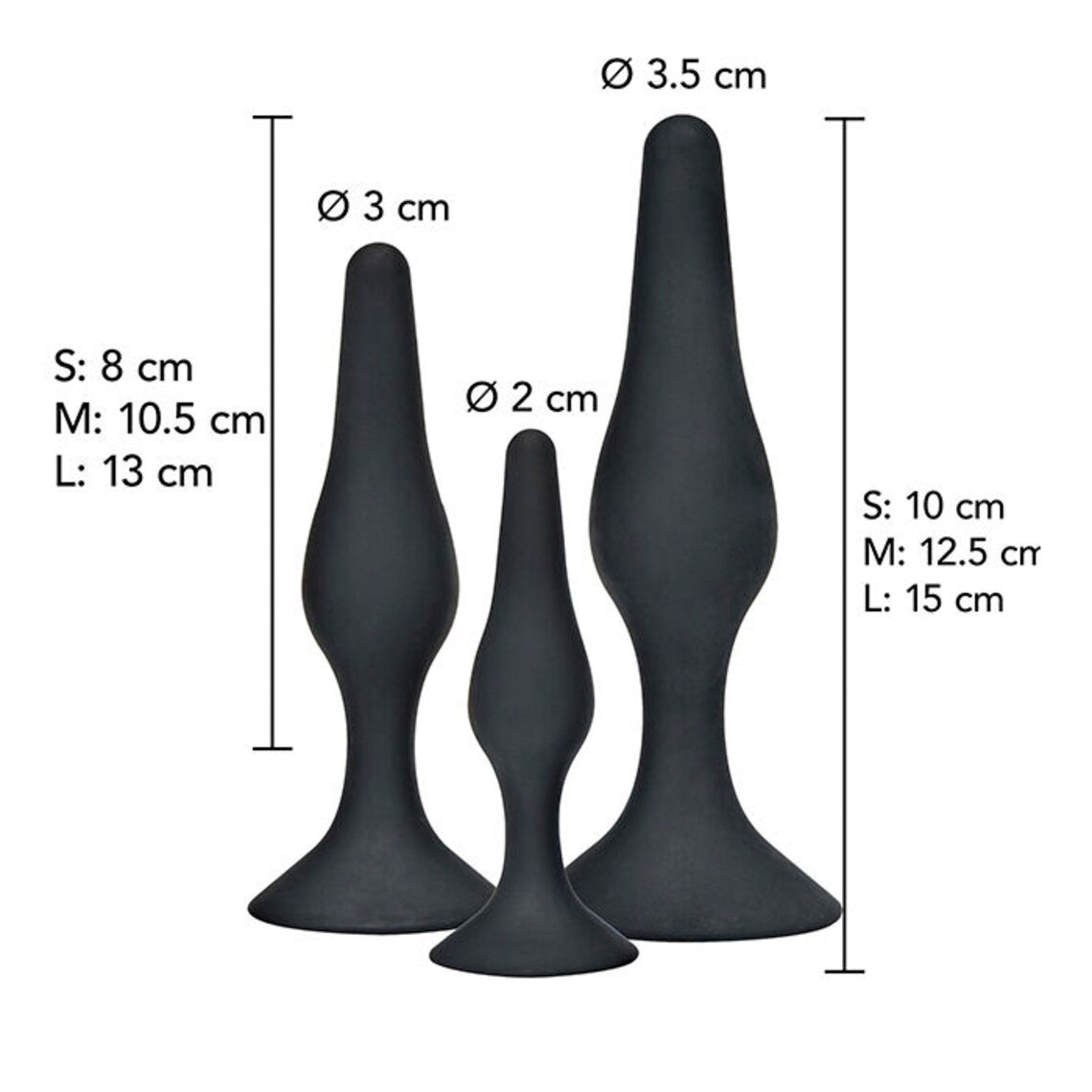 Kit de 3 Plugs Anales en color negro. Perfecto para iniciados en sexo anal.