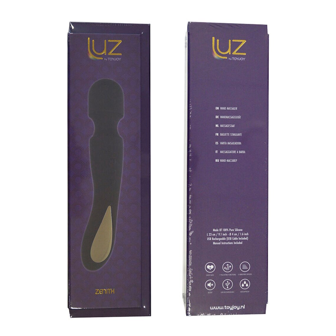 El masajeador de varita Zenith ofrece todas las lujosas características de LUZ by TOYJOY en un diseño estilizado y elegante. Su diseño recargable por USB está hecho de silicona premium suave al tacto para una sensación suave, cómoda y lujosa. El Zenith cuenta con 7 funciones de vibración, pulsación y aumento gradual, fácilmente controladas mediante botones intuitivos. El mango/base del juguete cuenta con una exclusiva luz LED multicolor que ilumina tu placer y crea el ambiente perfecto para una sesión de exploración íntima y sensual.